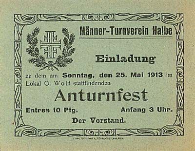 Im Juni 1902 entstand daraus der Männer-Turnverein Halbe, der sich dem Zentralverband des deutsch-österreichischen Turnerbundes anschloss. Die Devise lautete nach Turnvater Jahn: